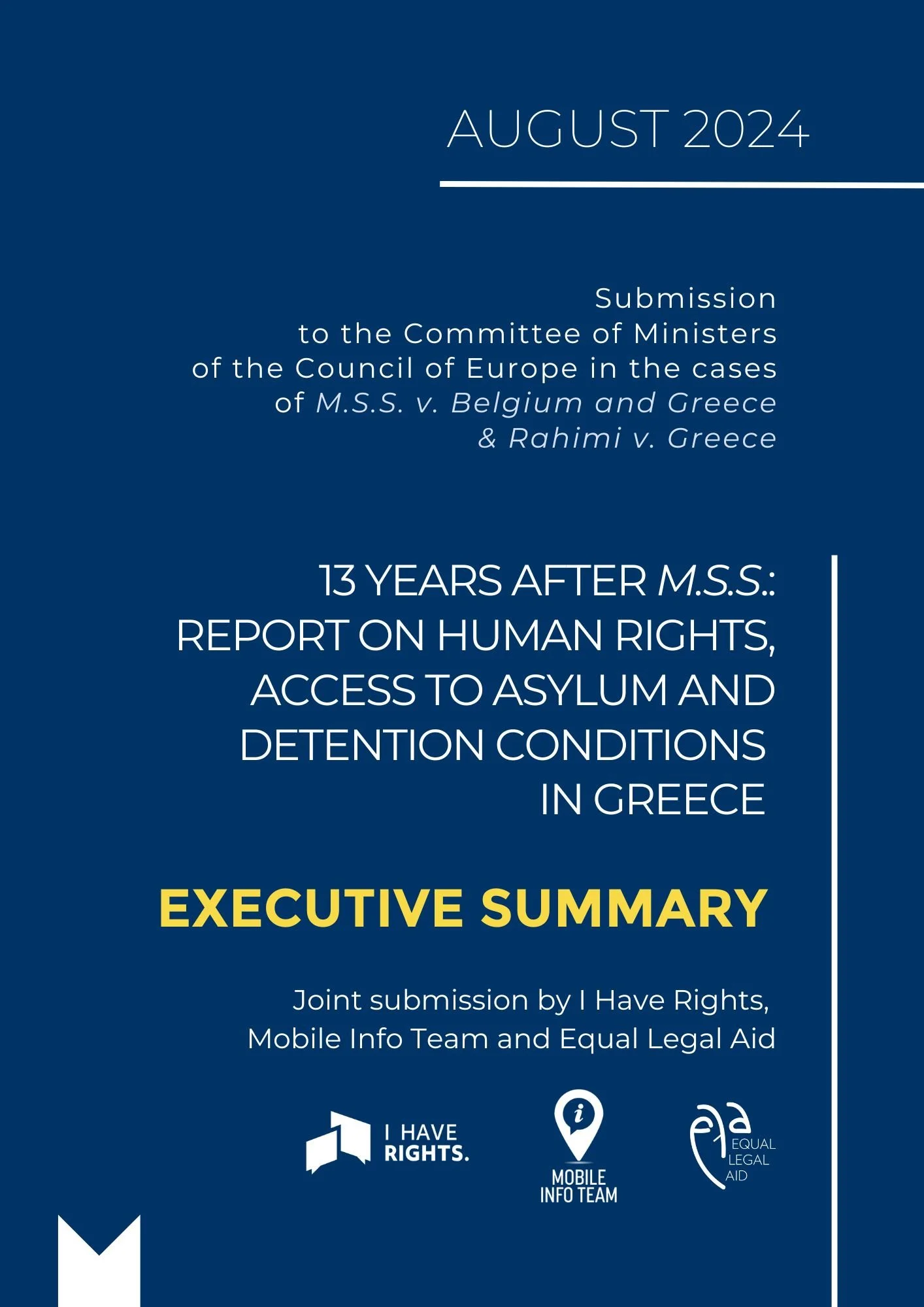 In their submission, I Have Rights, Mobile Info Team and Equal Legal Aid assess the extent of Greece’s compliance with the landmark judgment, thirteen years after M.S.S, highlighting that serious problems continue to persist, affecting a large number of vulnerable people.