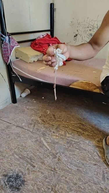 Photo shared with BVMN by a person detained in Amygdaleza, representing how dirty the containers detainees have to sleep in are, October 2025.